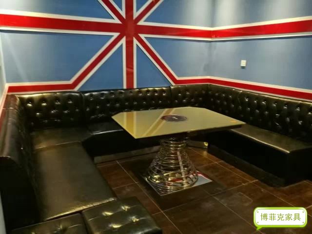 卡座沙發(fā)采用的是油蠟皮,價格實惠,雖然沒有超纖皮那么結(jié)實耐用,但也是對得起他的價格的。茶幾結(jié)合時尚與實用,采用不銹鋼管焊制的底架,也很好的解決了電磁爐的線路問題,臺面采用焗油玻璃,既有KTV應(yīng)有的時尚,也解決了餐飲所要的實用。款式的多樣性,使得工廠放樣師傅也是費了一番功夫,索性效果也是預(yù)期的好,可見我們的放樣師記憶之高超。