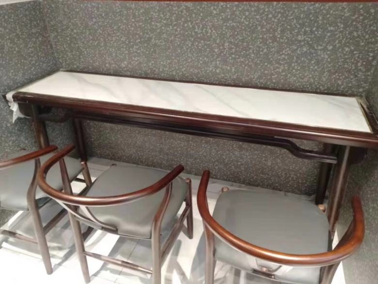 在跟客戶確認了材質和尺寸之后,工廠生產部就安排了加工,不到20天的時間,餐桌椅已經完工。客戶到廠驗收后,廠里一刻也不敢耽誤,即刻安排車輛和安裝師傅前往現場進行餐桌椅擺放。