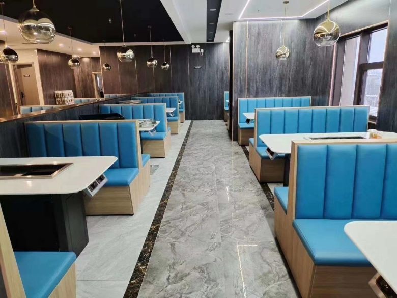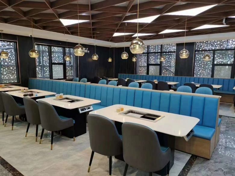 西安某餐廳涮烤一體桌卡座沙發(fā)交貨實(shí)拍
