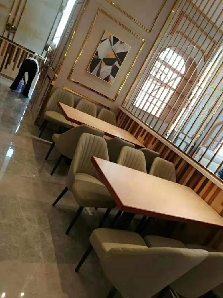 小編忙里偷閑隨手在交貨現場拍攝了幾張店里的照片,通過照片可以直觀的看到餐桌椅安裝之后的效果是非常不錯的,就連卡座沙發也是非常的有質感,而且偷偷的告訴各位老板,我們可是全國為數不多的為餐飲客戶提供終身質保的餐桌椅廠家哦!