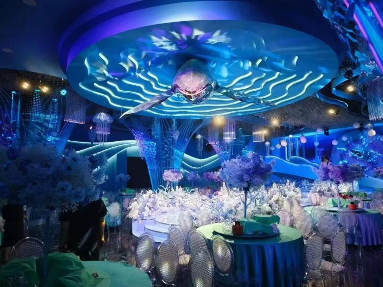 銅川吉富宴會中心是按照高標準建造的承接宴席的餐飲場所,室內宴會廳由香檳廳、國風廳、海洋廳、水晶廳組成。香檳廳室內空間無立柱設計,層高5米,可同時容納25-31桌賓客就餐,設計風格時尚。國風廳可容納16-24桌就餐,適合中式婚禮的新人使用。海洋廳可容納28-36桌就餐,空間設計主要體現出東南亞元素,很適合夏天婚禮。水晶廳可容納28-36桌同時就餐,粉色浪漫,配備有獨立新娘電梯。另外,該宴會中心還設有戶外草坪供新人舉辦草坪婚禮使用。