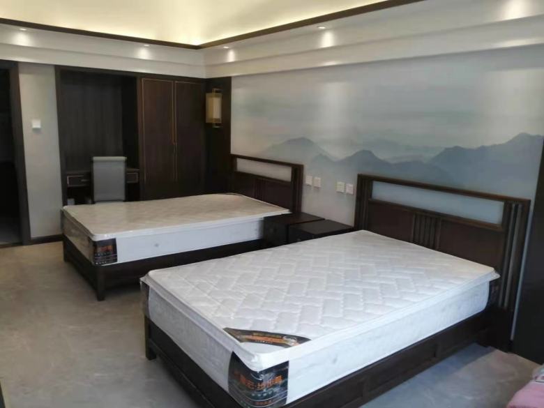 經過溝通后,設計師明白了客戶的需求,客房的裝修以中式風格為主,酒店家具也以新中式設計為主,包括酒店床、酒店沙發、酒店辦公桌椅、酒店包廂餐桌椅。另外,該民宿酒店還配備了KTV,因此,也需要定做KTV沙發和茶幾。