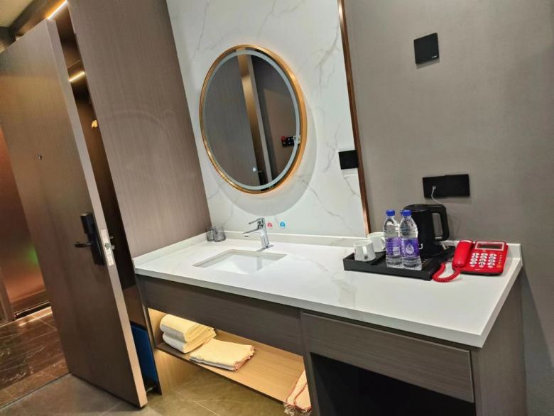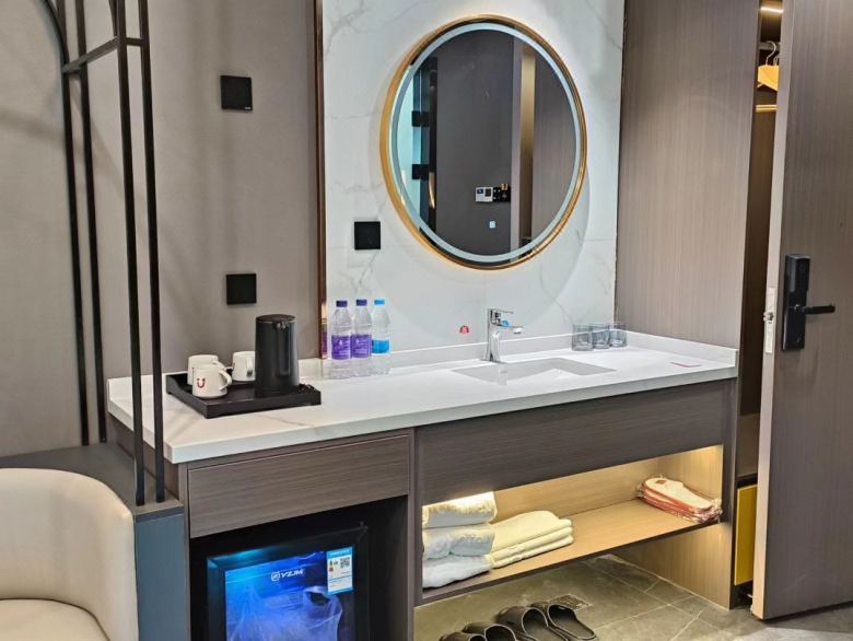 酒店客房家具由我廠負(fù)責(zé)生產(chǎn),依據(jù)酒店設(shè)計(jì)效果圖方案上門量尺、和設(shè)計(jì)師選定色板后再進(jìn)行二次深化,整體客房家具采用免漆板制作,封邊工藝細(xì)節(jié)處理無瑕疵,嚴(yán)格按照合同約定時(shí)間生產(chǎn)定制和上門安裝,落地效果甲方一致滿意!