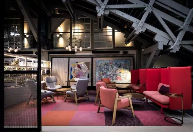 OW的設計靈感來自大自然,設計師用以打造集古典情懷與現代奢華于一身的旅店內部。大廳依舊保留了舊廠房的格局,裸露鋼筋的三角結構,如溫室般的玻璃屋,屋中屋設計式樣的簡約柜臺,支撐一樓空間的黑色鋼骨及原木建材,無一不散發著帶有高雅氣息的工業風格,同時有兼具了時尚氣質。這里所有的元素,都粗獷而豪放,像極了穿著黑色西裝打著領帶的禁欲系男人。但一切黑色鋼鐵透明玻璃又都巧妙融于采光明亮的空間里,帶了些許柔和的色彩。然而公共休息區的酒吧、咖啡室、餐廳采用鮮艷的色彩,并通過簡約的細節做區隔。在室內,隨處可見郁郁蔥蔥的綠色植物和樹木,點綴于各個角落。